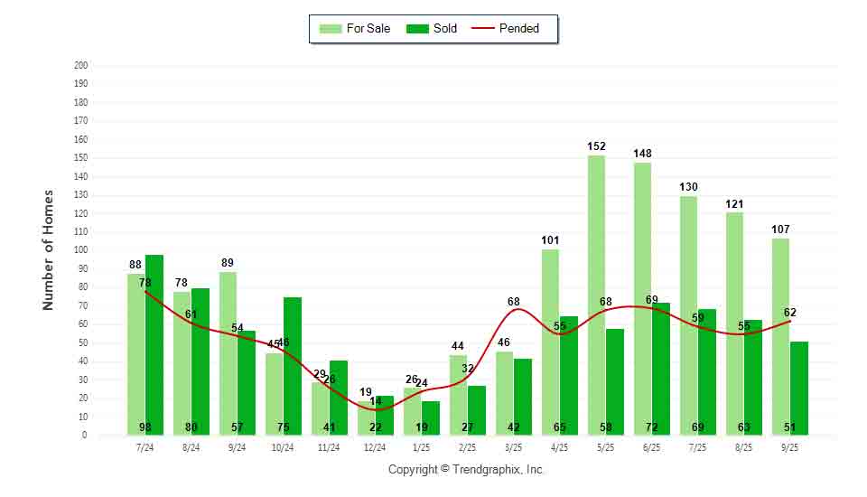 September property sales were 51, down 10.5% from 57 in September of 2024 and 19% lower than the 63 sales last month.